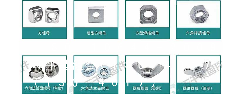 螺栓類:外六角螺栓、外六角法蘭面螺栓、內六角圓柱頭螺栓、吊環螺栓、膨脹螺栓、沉頭內六角螺栓、盤頭內六角螺絲、馬車螺栓、雙頭螺栓、蝶型螺絲、活節螺栓、地腳螺 栓、U型螺栓、四角螺栓等 螺帽類:鉚螺母、吊環螺母、六